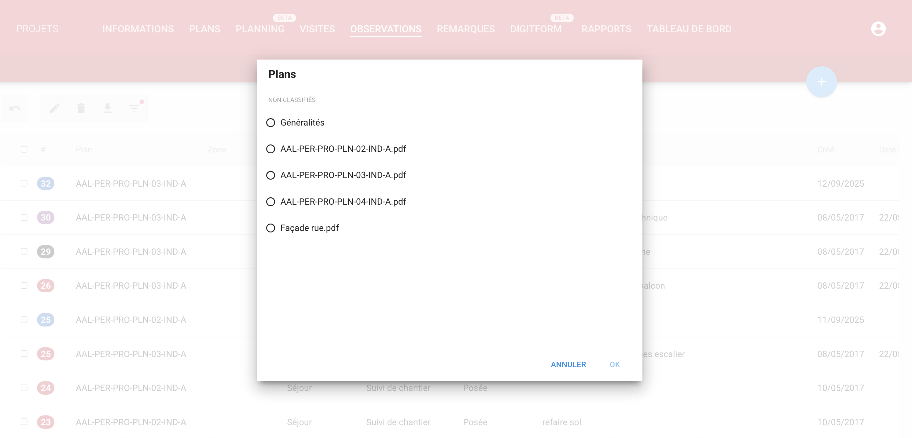 Il est toujours possible de créer des observations, qu’elles soient localisées sur le plan ou non localisées, directement depuis la page Généralités. Cette centralisation permet de gérer efficacement tous les types d’observations, en fonction de leur nature et de leur besoin de localisation.