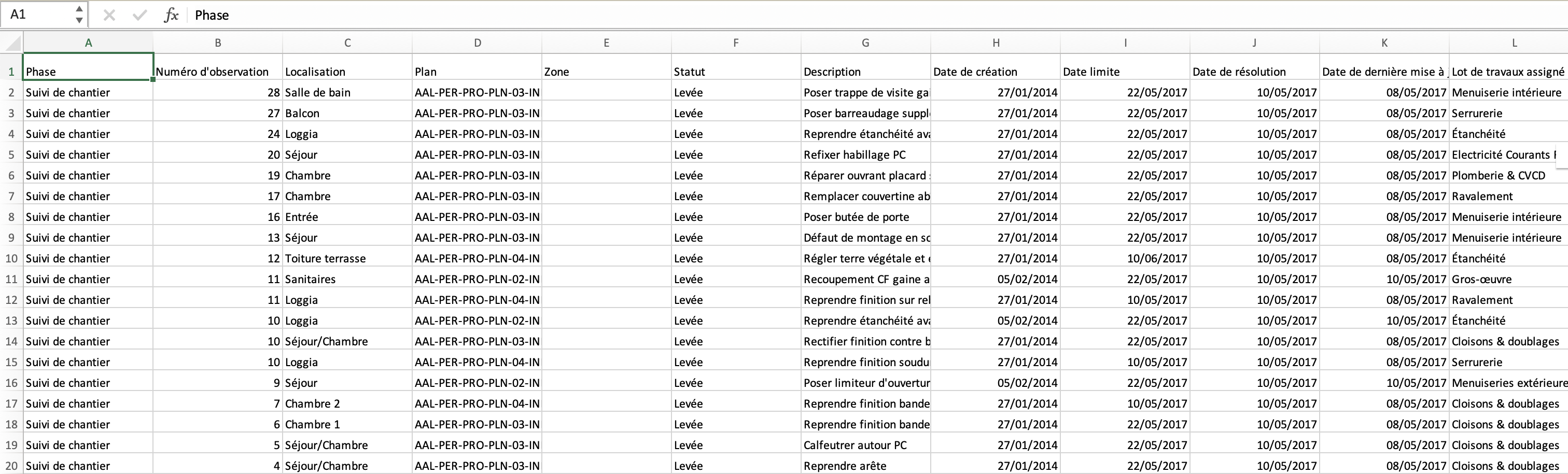 Lot de travaux : Tous