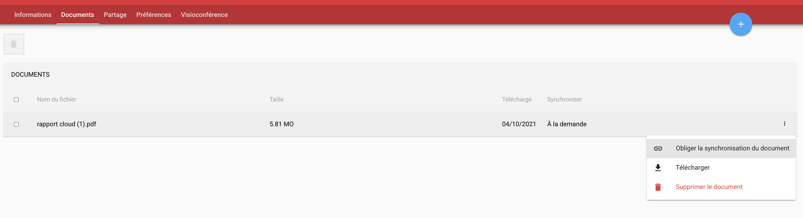 Lorsque vous êtes sur cette page, cliquez sur le bouton bleu “+ “situé en haut à droite pour ajouter un document.