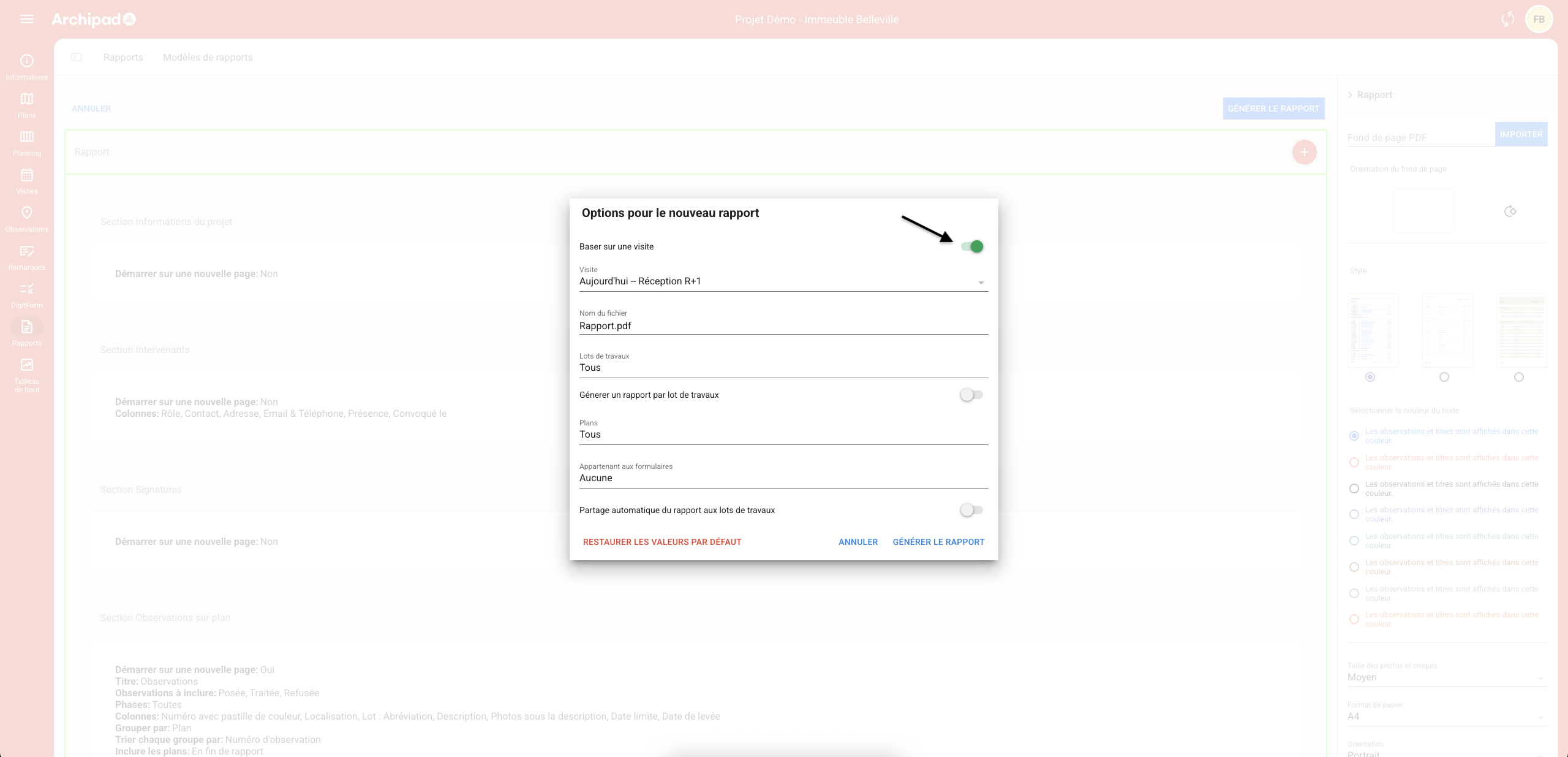 Le rapport inclura toutes les observations liées au projet, sans distinction de visite.