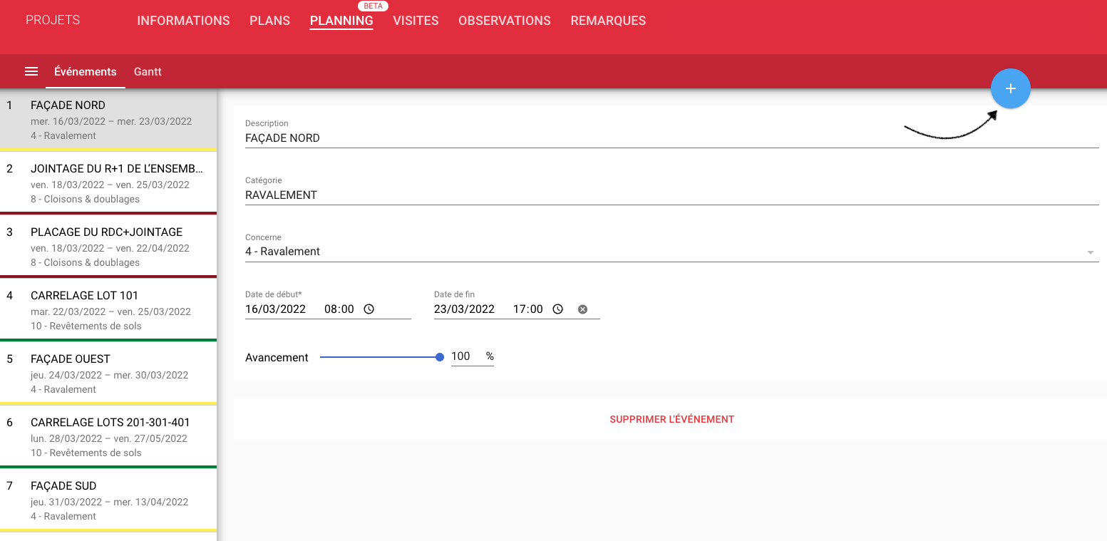 Seul le planning master peut créer des événements dans Archipad App et Archipad Cloud.