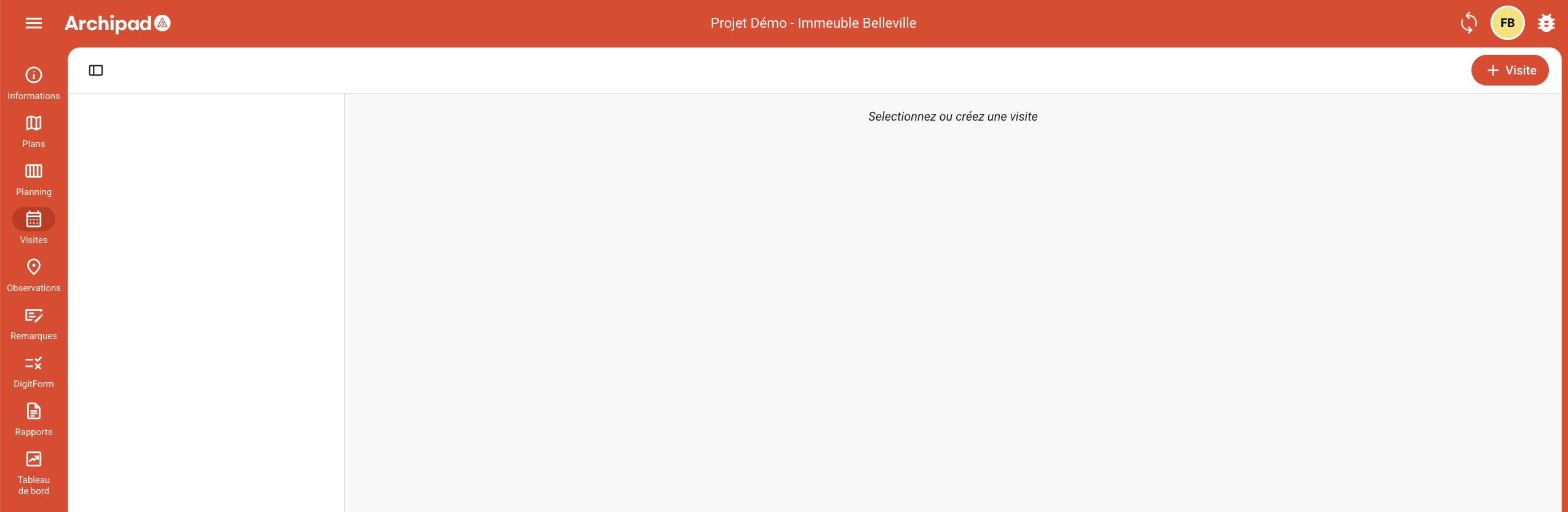 Comme dans Archipad App, pour créer une visite, accédez au menu "Visites".