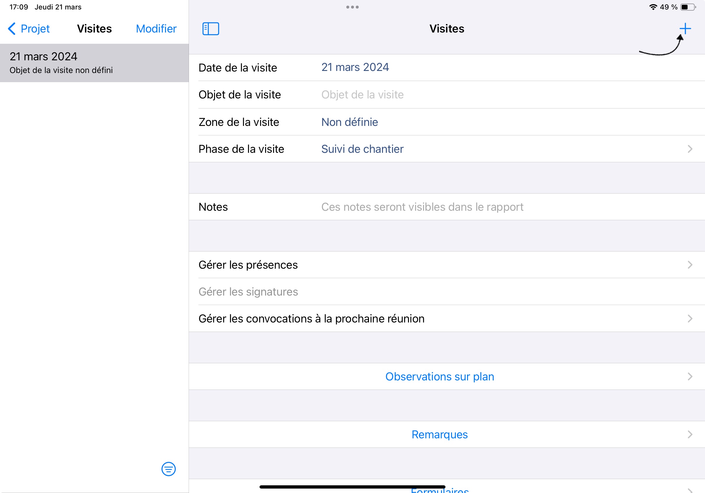 Pour créer votre première visite, cliquez sur le bouton "+" situé à droite de l'écran.