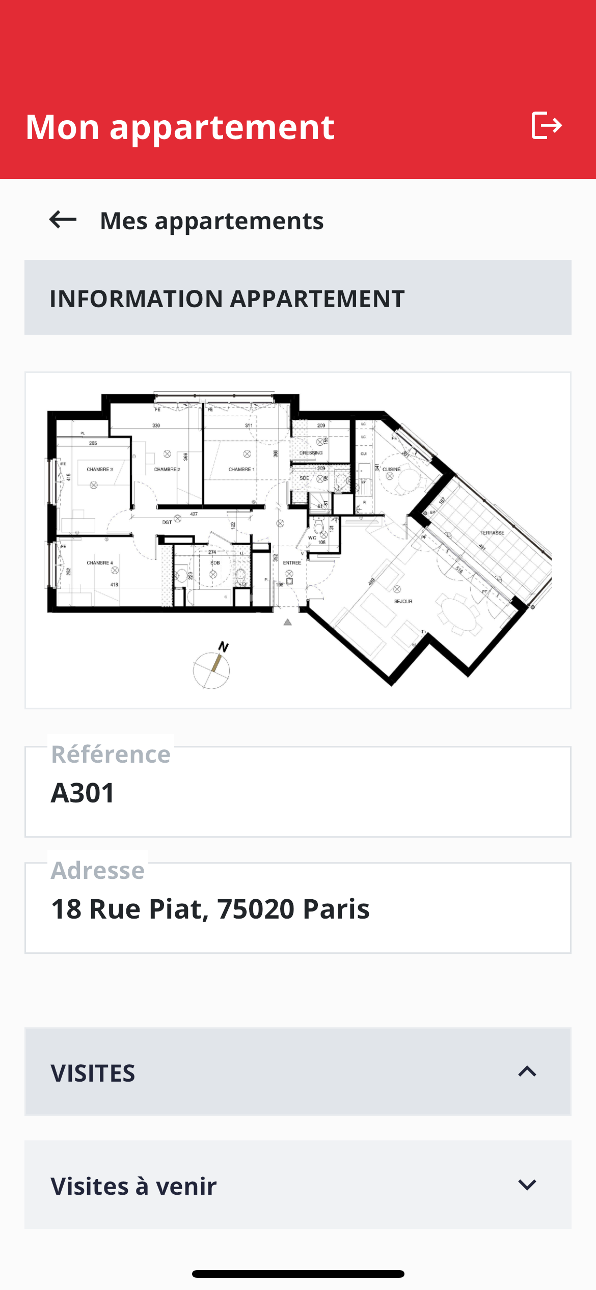 L'écran principal d'Archipad SAV destiné aux acquéreurs regroupe toutes les informations cruciales, les visites passées et à venir, l'état des réserves (en attente et acceptées), les plans, ainsi que les documents associés.
