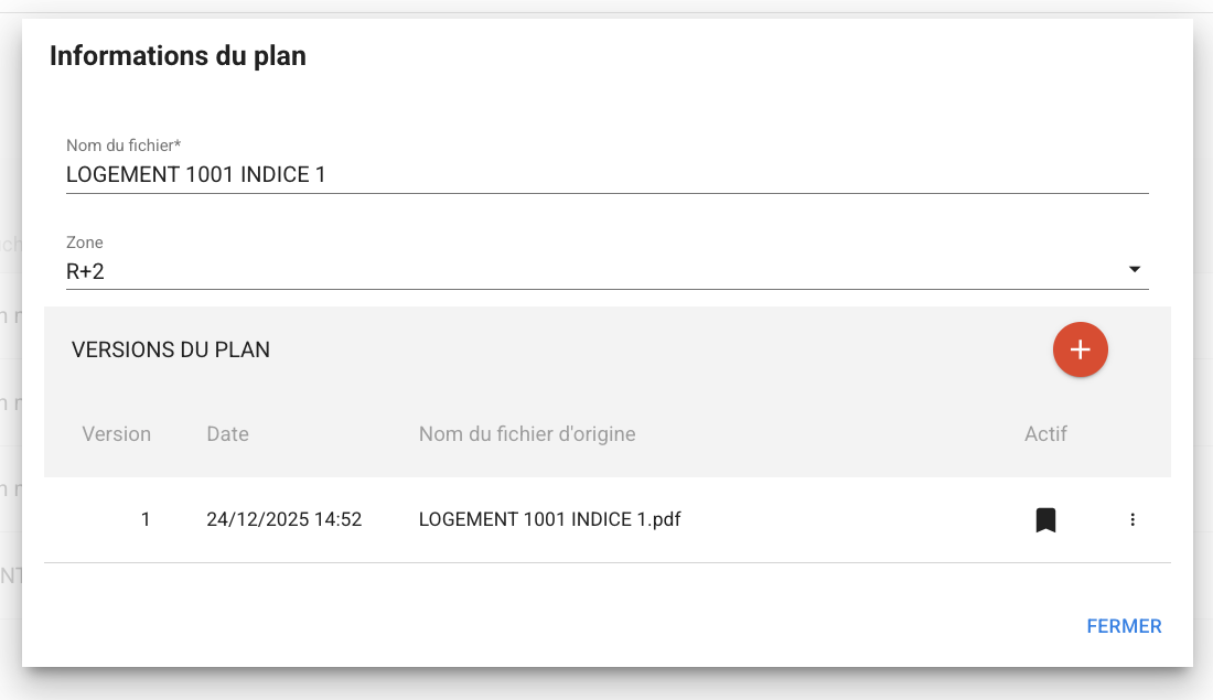 La gestion des versions de plans s’effectue dans la section Versions du plan.